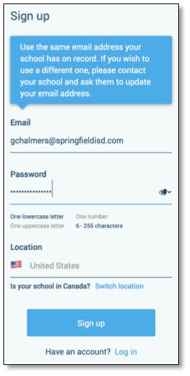 that the school has on record, use this email address when you sign up.