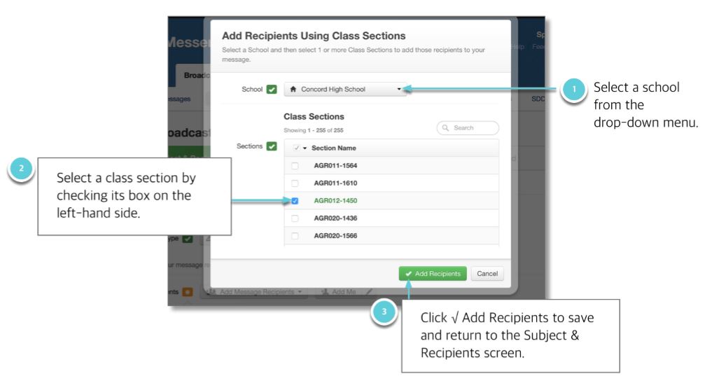 If your system administrator has imported the applicable data, you can target recipients by class section.