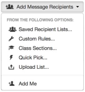 Clicking the “Add Message Recipients” drop-down menu offers a wealth of options when selecting your recipients: