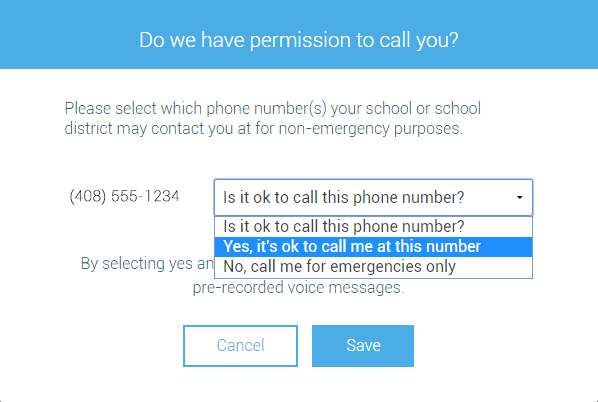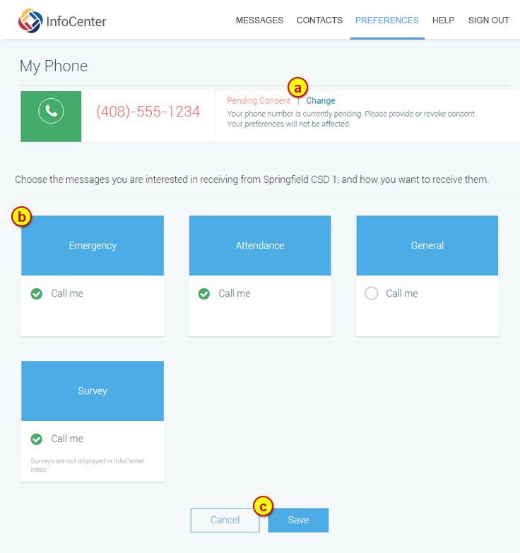 If any of your phones are outlined in red and show the "Pending Consent" message, click the "Change" link and choose the option from the list which is right for you.